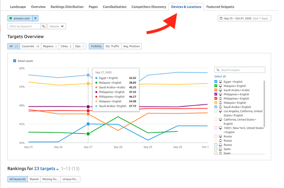 Consultez notre rapport Découverte des concurrents pour voir exactement qui est en concurrence pour vos mots clés cibles dans votre lieu et votre appareil cibles.