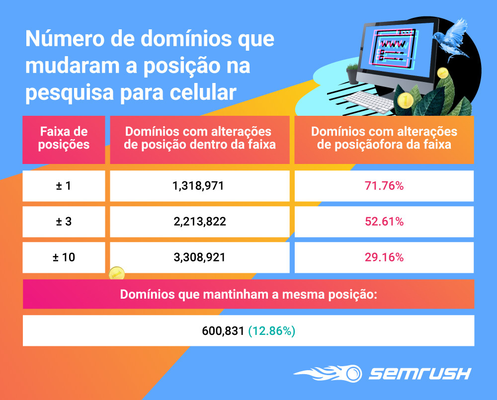 Quantos domínios mudaram as posições na pesquisa para celular?