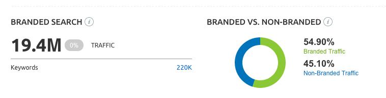 When you review this information, it reveals how a domain is getting their traffic. If most of their traffic is coming from branded keywords, this means that most of their audience knows them as a brand. If they have more non branded keywords, this can tell you that this particular website is trying to branch out and become discovered.
