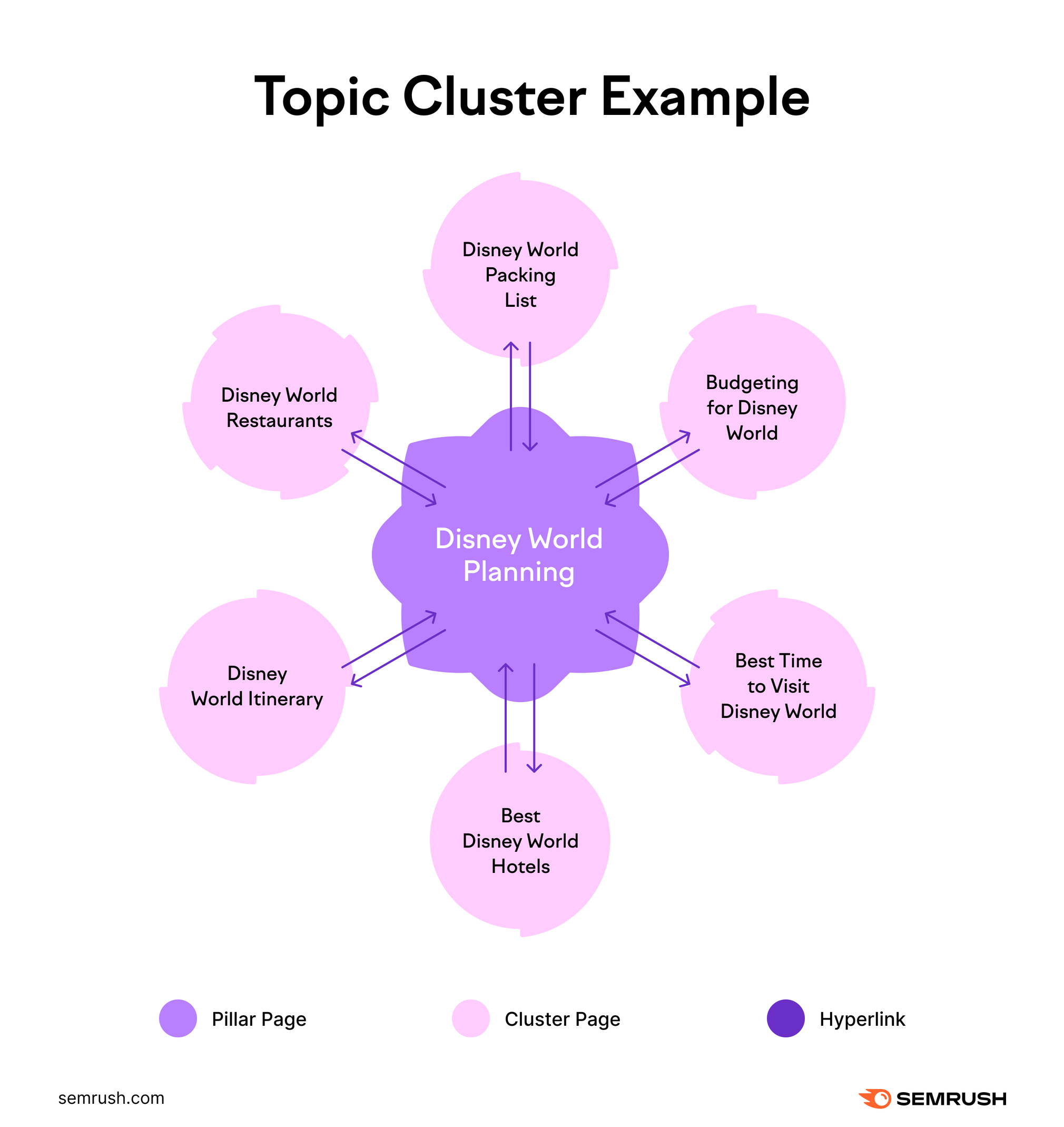 The pillar links to supporting cluster pages that explore related keywords and topics in-depth.